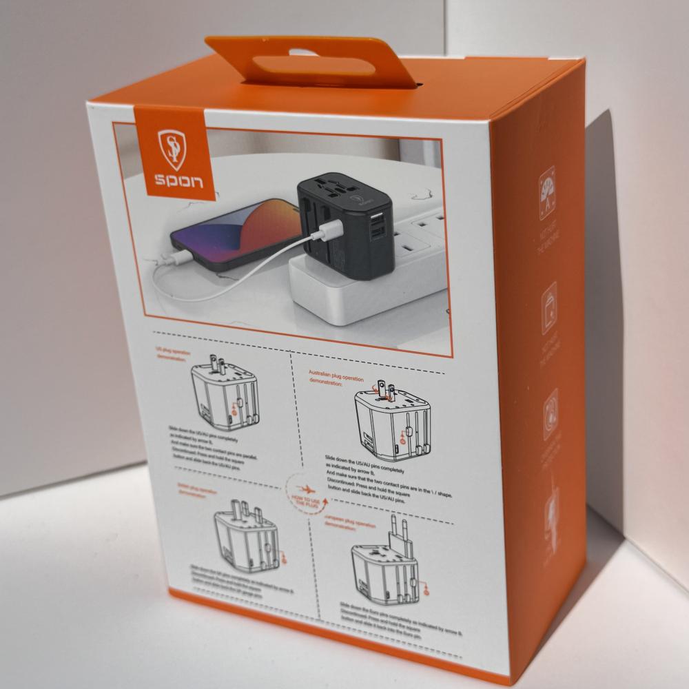 - يوفر محول الطاقة العالمي حلاً فعالاً للشحن في أي مكان بالعالم، مما يجعله مثاليًا للسفر.